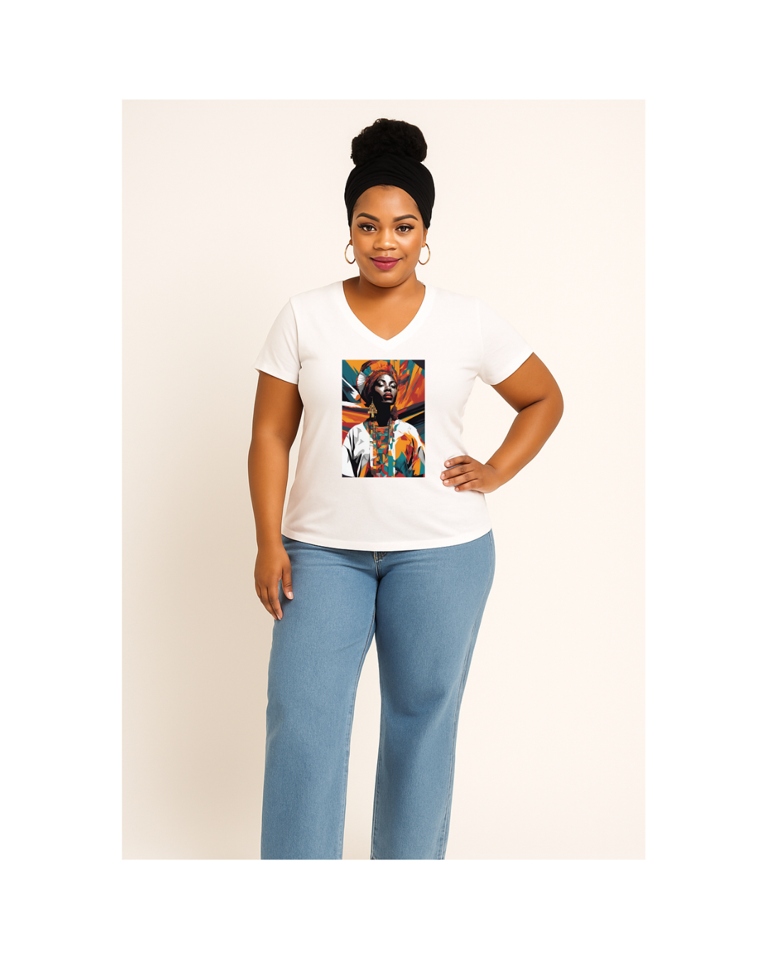 Step into the light with the Radiant Queen V-Neck Tee — a celebration of heritage, resilience, and undeniable grace. With its flattering cut and soul-stirring design, this tee honors the brilliance of women who rise, speak, and shine boldly. It’s more than a look — it’s your legacy in motion.